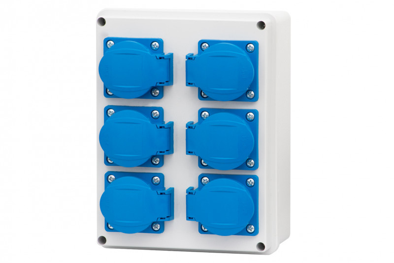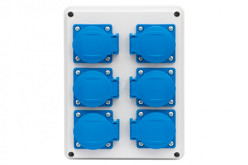 Jest wyposażona w gniazda jedno-fazowe 230V o stopniu ochrony IP44
