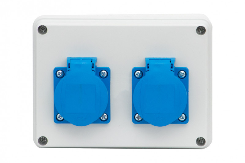 Jest wyposażona w gniazda jedno-fazowe 230V o stopniu ochrony IP44