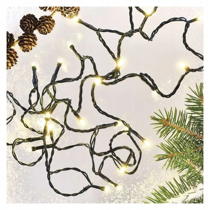 Łańcuch świetlny Classic 240 LED o długości 24 metrów to efektowna dekoracja świetlna zaprojektowana zarówno do wnętrz, jak i na zewnątrz. Emituje światło w barwie ciepłej bieli, co tworzy przytulny klimat świąteczny lub dekoracyjny. Przewód dekoracyjny jest w kolorze zielonym, co umożliwia jego dyskretne wkomponowanie w gałęzie choinki, girlandy lub roślinność.