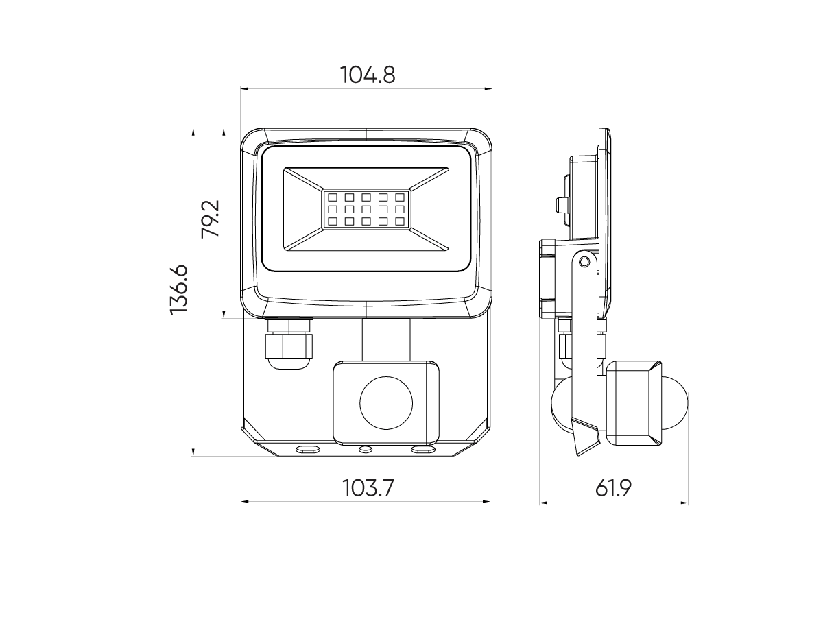 - Czujnik ruchu: włącza naświetlacz w momencie pojawienia się ruchu, zasięg działania do 8 m