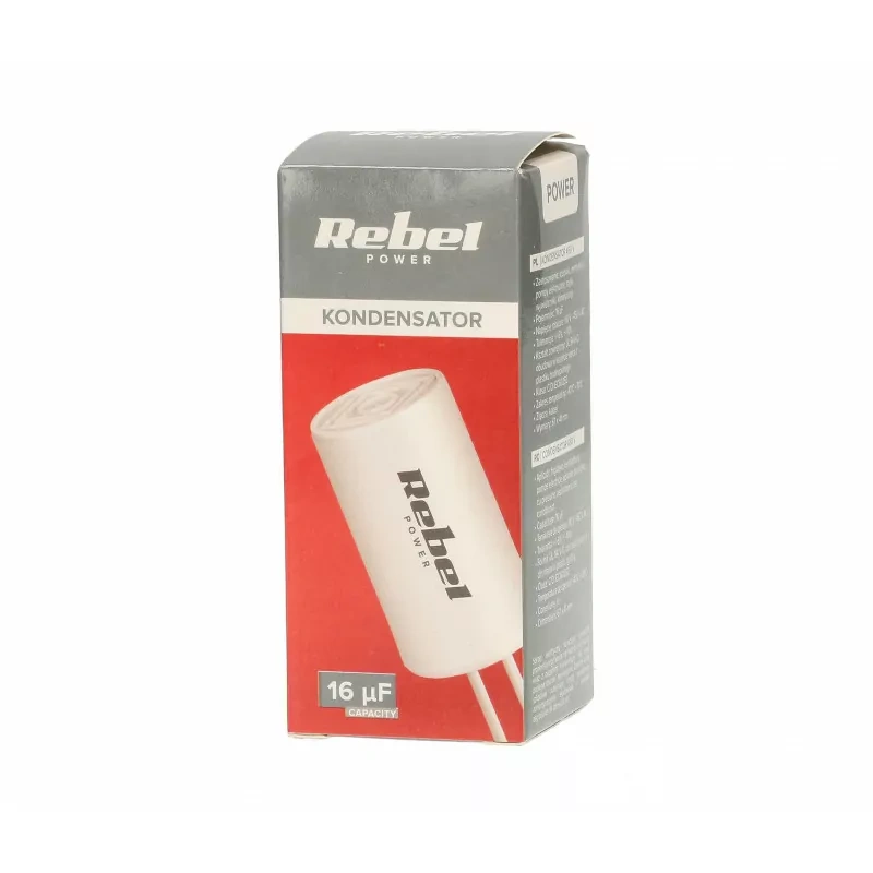 Wysokiej jakości kondensator rozruchowy/pracujący o pojemności 16 µF i napięciu roboczym do 450V AC, przeznaczony do zastosowania w silnikach jednofazowych. Idealnie sprawdza się w urządzeniach takich jak lodówki, wentylatory, pompy elektryczne, myjki ciśnieniowe, wywietrzniki oraz systemy klimatyzacji.