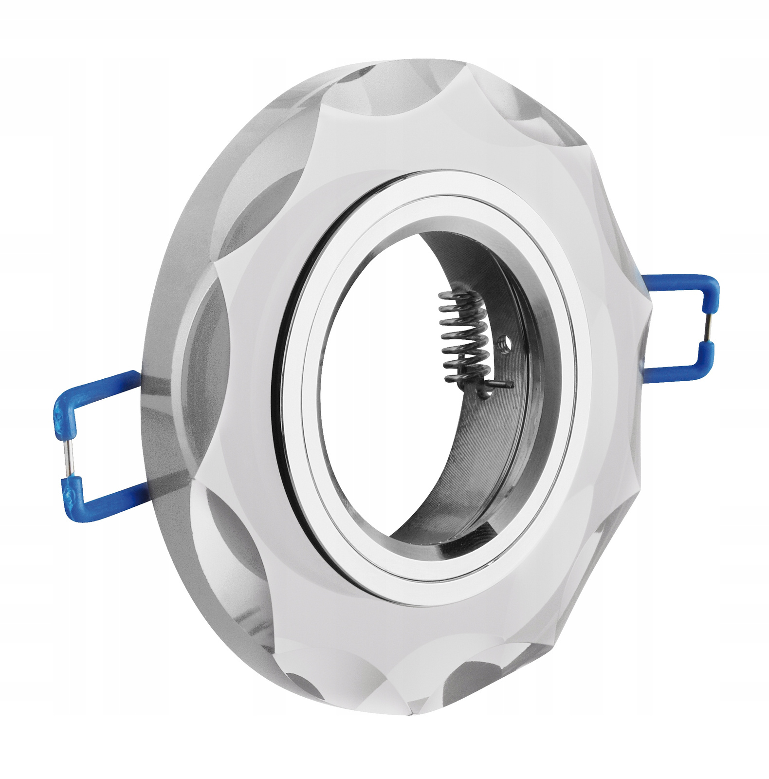 Szklana oprawka doda blasku do wnętrz w stylu Glamour jako dodatkowe punkty świetlne. Oprawa powinna byś montowana w pomieszczeniach, gdzie nie jest narażona na działanie wilgoci. Oprawa dostarczana jest ze wszystkimi elementami potrzebnymi do montażu (nie zawiera źródła światła). Zaleca się używanie źródeł światła z trzonkiem MR16.