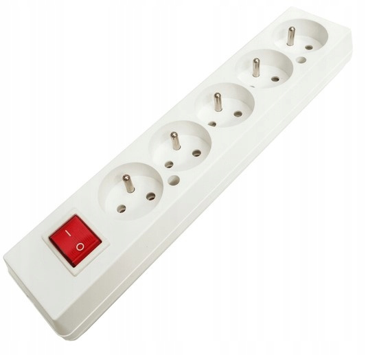 Listwa zasilająca 5 gniazd z uziemieniem + wyłącznik biała uniwersalna 250V 16A